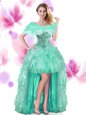 Turquoise Sleeveless Beading and Ruffles High Low Prom Party Dress