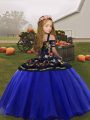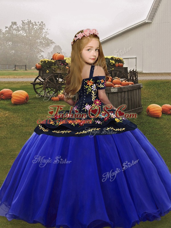 Turquoise Sleeveless Embroidery Floor Length Girls Pageant Dresses