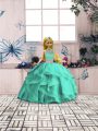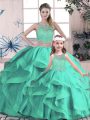 Turquoise Sleeveless Floor Length Beading and Lace and Ruffles Lace Up Quinceanera Dresses