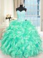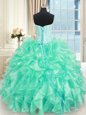 Turquoise Sleeveless Floor Length Beading and Ruffles Lace Up Vestidos de Quinceanera