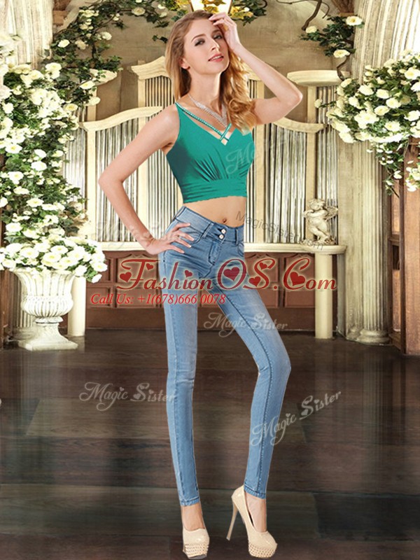 Turquoise Sleeveless Floor Length Embroidery Backless Ball Gown Prom Dress