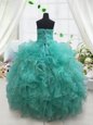Turquoise Sleeveless Organza Lace Up Kids Formal Wear for Quinceanera and Wedding Party