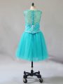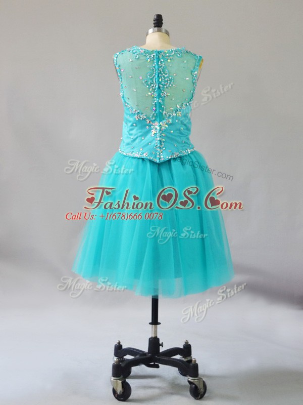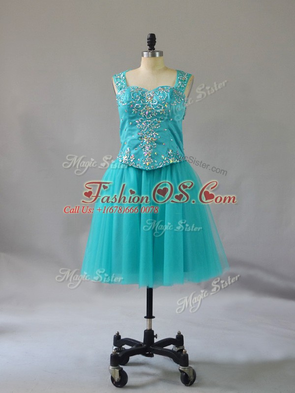 Turquoise Straps Neckline Beading Cocktail Dress Sleeveless Zipper