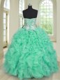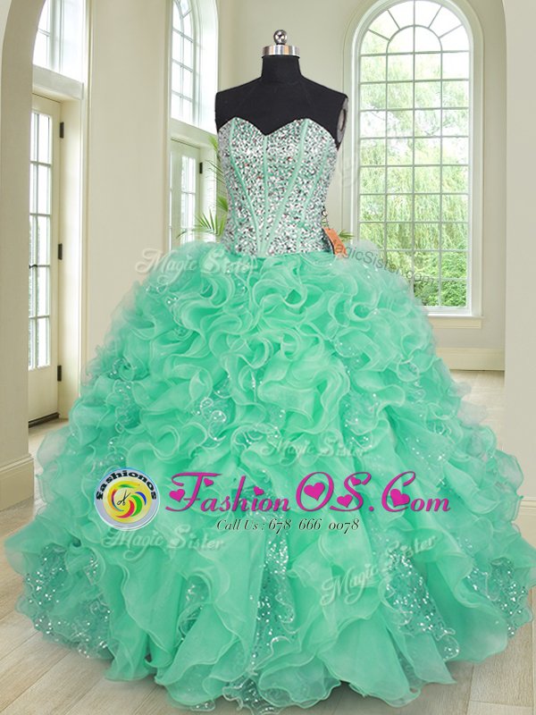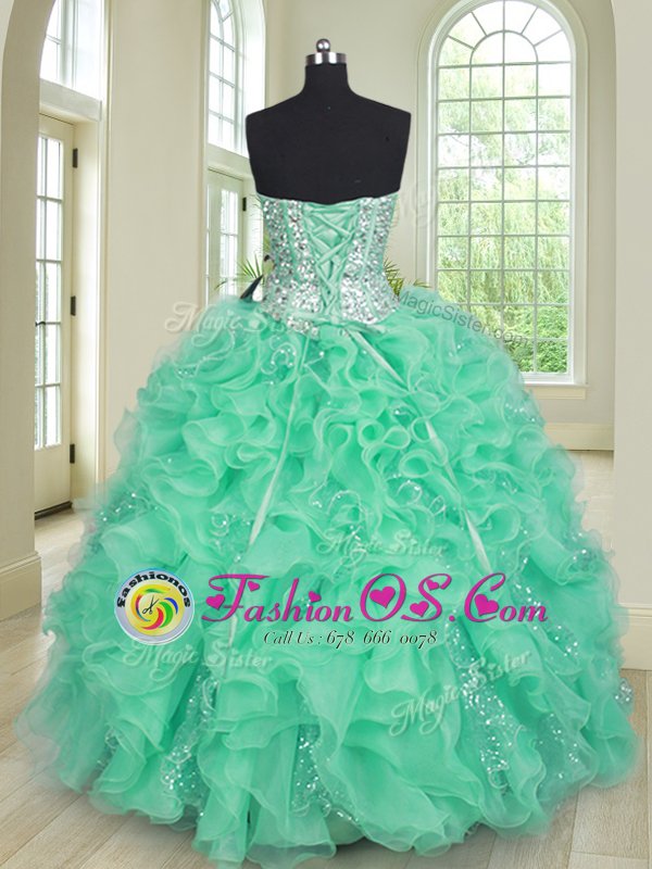 Turquoise Sweetheart Lace Up Beading and Ruffles Quinceanera Dress Sleeveless