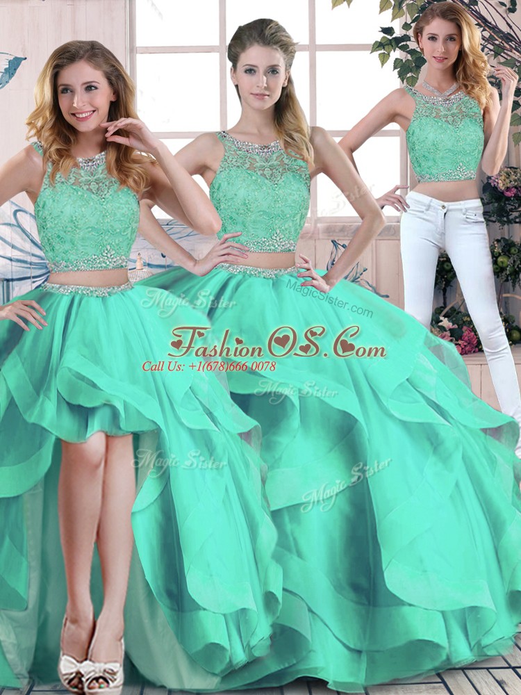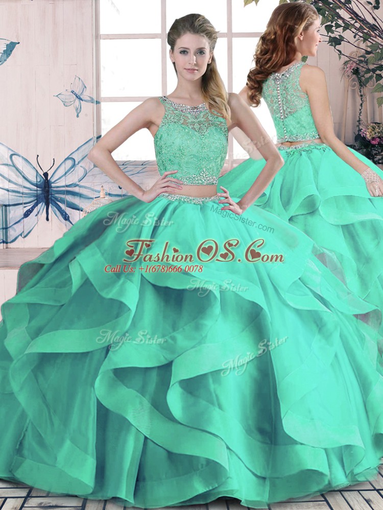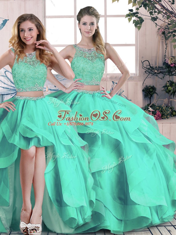 Home >  Quinceanera Dresses >  Detachable Quinceanera Skirts > Turquoise Tulle Zipper Sweet 16 Quinceanera Dress Sleeveless Floor Length Beading and Ruffles