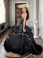 Home >  Quinceanera Dresses >  Cute Quinceanera Dresses > Two For One Taffeta Beaded and Applique Black Sweet 16 Dress with Brush Train