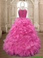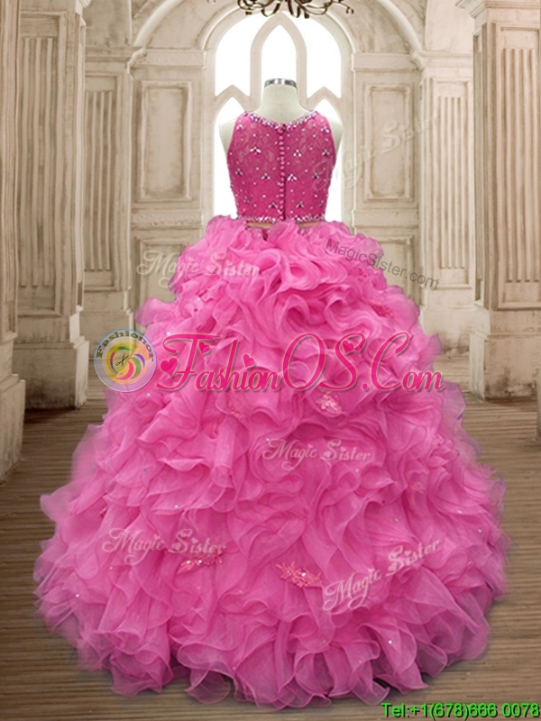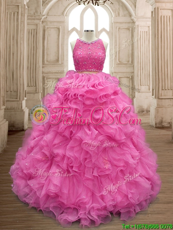 Two Piece Scoop Beaded and Ruffles Quinceanera Dress in Organza