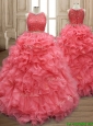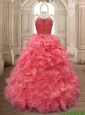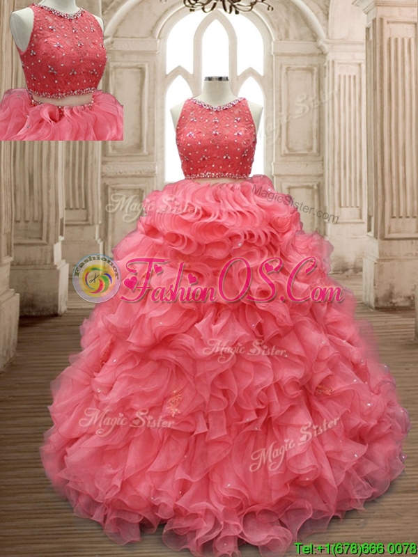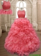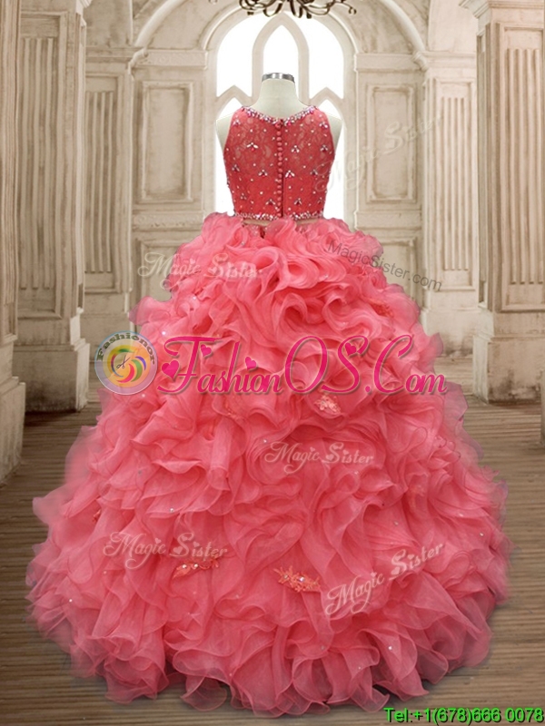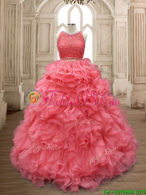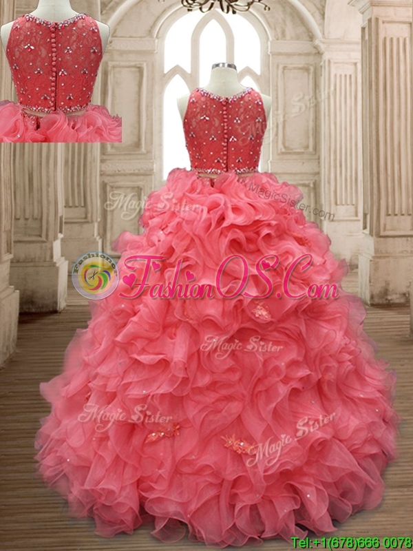 Two Piece Scoop Watermelon Red Quinceanera Dress with Beading and Ruffles