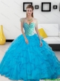 Unique 2015 Baby Blue Beading and Ruffles Sweetheart Quinceanera Dresses