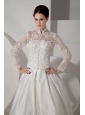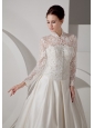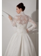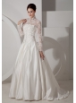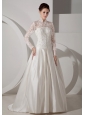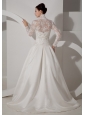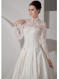 Unique A-line High-neck Wedding Dress Brush TrainTaffeta Lace