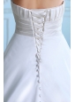 This white sweetheart wedding dress will make you the most beautiful bride in the world. It features a lovely pleated bodice with a cross over look. A empire waist with a brooch style beadwork in the middle accent your waistline. The A-line skirt falls in clean lines to the floor. The sweep train adorned with button and the lace up closure finishes the look.