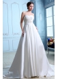 Unique A-line Sweetheart Ruch and Beading Low Cost Wedding Dress Court Train Satin