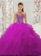 Unique and Detachable Beading and Ruffles Fuchsia Sweet 16 Dresses