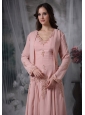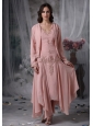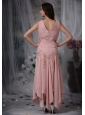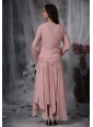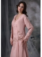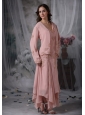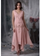 Unique Baby Pink Mother of the Bride Dress Column V-neck Asymmetrical Appliques Chiffon