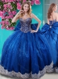 Unique Ball Gown Sequins Bowknot and Beaded Royal Blue Quinceanera Dress with Sweetheart