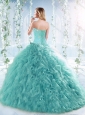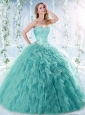 Unique Beaded and Ruffled Aquamarine Detachable Quinceanera Dress with Brush Train