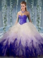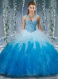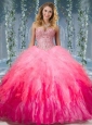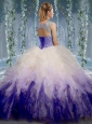 Unique Beaded and Ruffled Organza Quinceanera Gown in Gradient Color