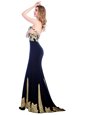 Home >  Prom Dresses >  Junior Prom Dresses > Unique Black Mermaid Satin Strapless Sleeveless Appliques With Train Zipper Prom Dress Sweep Train