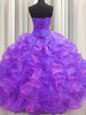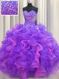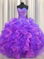 Unique Bling-bling Visible Boning Sweetheart Sleeveless Lace Up Quinceanera Dresses Multi-color Tulle