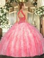 Unique Blue Ball Gown Prom Dress Military Ball and Sweet 16 and Quinceanera with Beading and Ruffles High-neck Sleeveless Lace Up