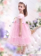 Unique Bowknot and Appliques 2015 Little Girl Pageant Dresses in Rose Pink