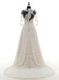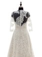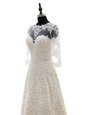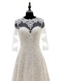 Unique Champagne Clasp Handle Scoop Lace Wedding Dresses Lace 3|4 Length Sleeve Court Train