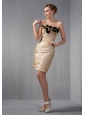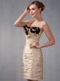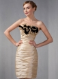 Unique Champagne Mother Of The Bride Dress Column Strapless Ruch and Hand Made Flowers Mini-length Taffeta