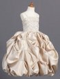 Home >  Special Occasion Dresses >  Cheap Flower Girl Dresses > Unique Champagne Sleeveless Beading and Pick Ups Floor Length Flower Girl Dress