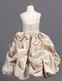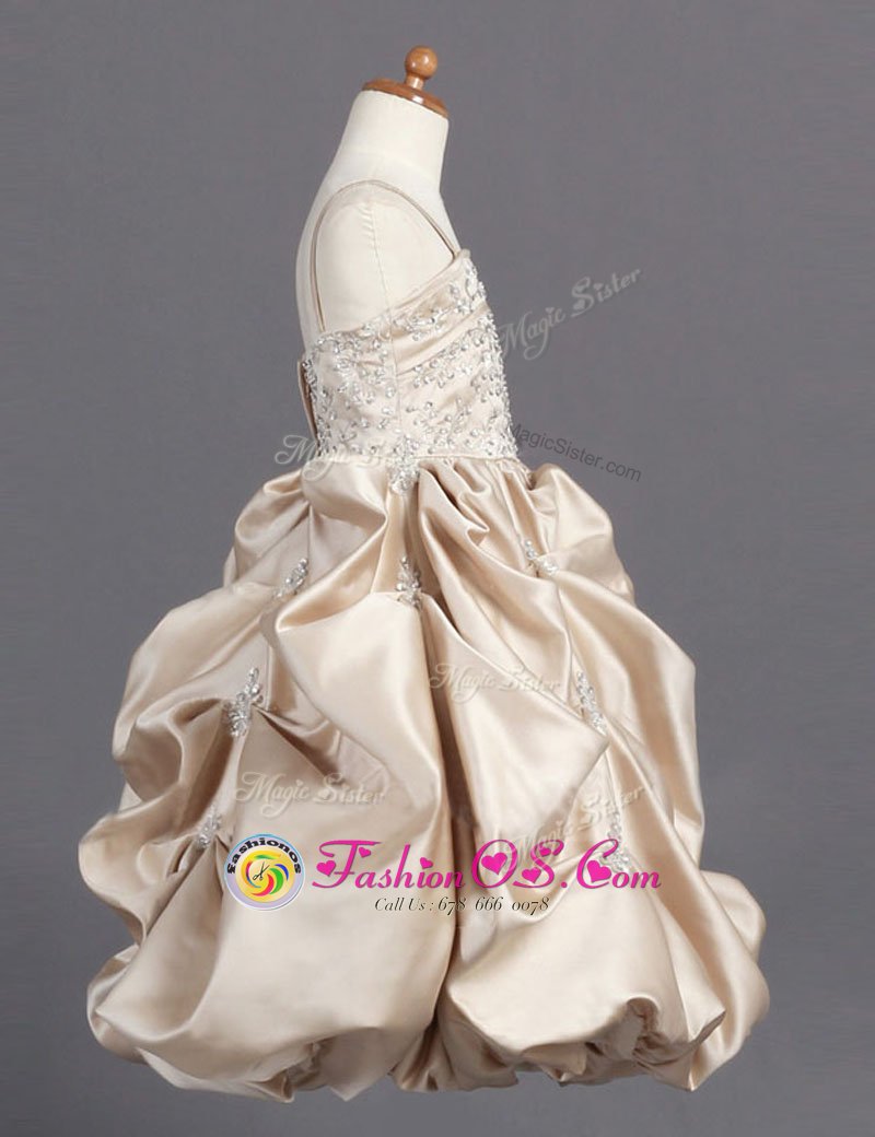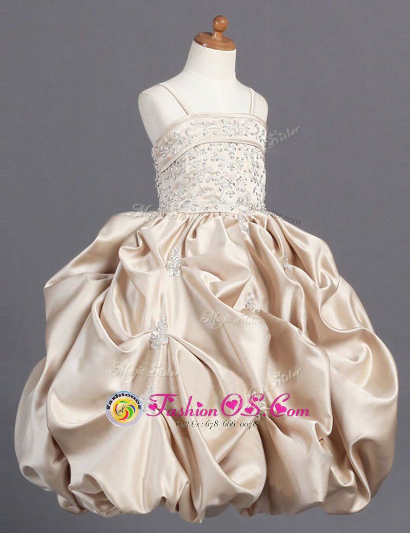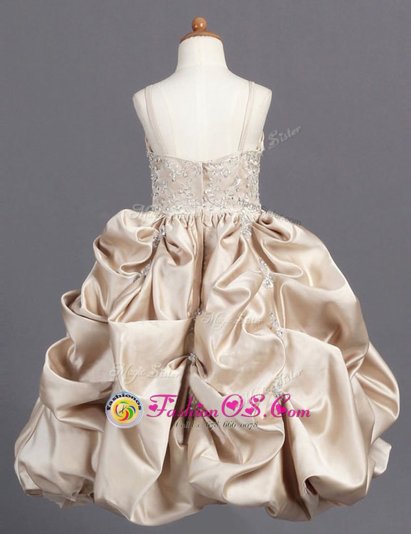 Unique Champagne Sleeveless Beading and Pick Ups Floor Length Flower Girl Dress