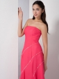Home >  Special Occasion Dresses >  Mother of the Bride Dresses > Unique Coral Red Mother Of The Brides Dress Empire Strapless Sequins Asymmetrical Chiffon