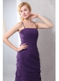 Unique Dark Purple Column Straps Prom Dress Floor-length Chiffon Ruffled Layers