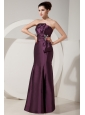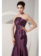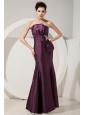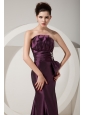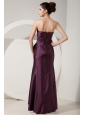 Unique Dark Purple Mermaid Prom Dress Strapless Satin Beading Floor-length
