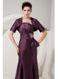 Unique Dark Purple Mermaid Prom Dress Strapless  Satin Beading Floor-length