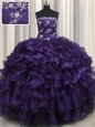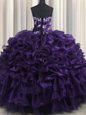 Home >  Quinceanera Dresses >  Fashionable Quinceanera Dresses > Unique Floor Length Purple Quinceanera Dress Organza Sleeveless Appliques and Ruffles and Ruffled Layers
