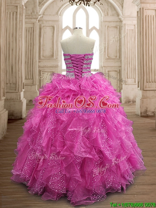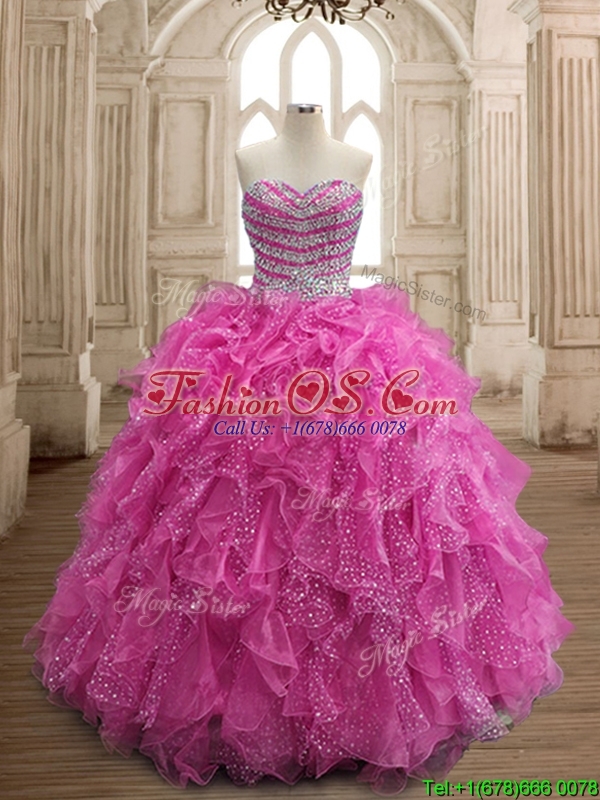 Unique Fuchsia Big Puffy Quinceanera Dress with Beading and Ruffles