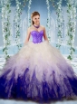 Unique Gradient Color Big Puffy Quinceanera Dress with Beading and Ruffles