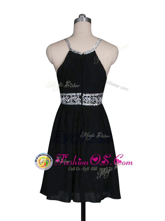 Unique Halter Top Black Sleeveless Chiffon Zipper Hoco Dress for Party