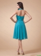 Unique Halter Top Ruffles Teal Short Prom Dresses for 2016