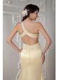 Home >  Prom Dresses >  Elegant Prom Dresses > Unique Light Yellow Column Prom Dress One Shoulder Satin Beading Brush Train