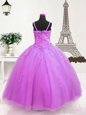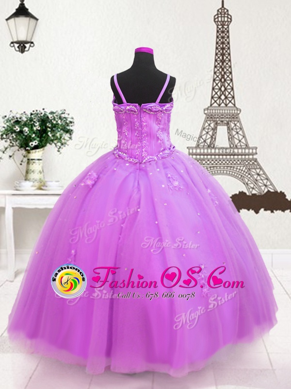 Unique Lilac Spaghetti Straps Zipper Beading and Appliques Little Girls Pageant Dress Sleeveless