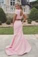 Unique Mermaid Scoop Rose Pink Satin Sweep Train Sleeveless Ruching