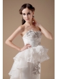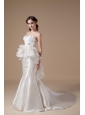 Home >  Wedding Dresses >  Latest Wedding Dresses > Unique Mermaid Strapless Wedding Dress Satin and Organza Appliques Court Train
