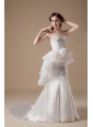 Unique Mermaid Strapless Wedding Dress Satin and Organza Appliques Court Train