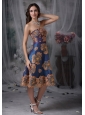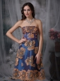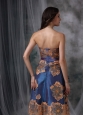 Home >  Evening Dresses > Unique Navy Blue Evening Dress A-line / Princess Strapless Tea-length Taffeta Appliques