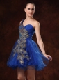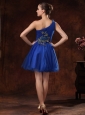 Unique One Shoulder Embroidery Mini-length For Royal Blue Cocktail / Homecoming Dress