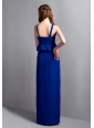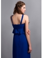 Unique Peacock Blue V-neck Chiffon Bridesmaid Dress Floor-length
