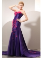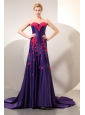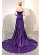 Dramatic and magnificent! At the first sight I see this dress, I feel in love with her deeply. What about you? This purple dress has a sweetheart neckline style bodice that well adorned with chic and ravishing handmade roses, especially on the bust area. The pleated floor length skirt flows gracefully to create a beautiful court train that also heavily characterized by the lovely roses on the back. Please don't miss the chance to show off your beauty, otherwise you will regret.