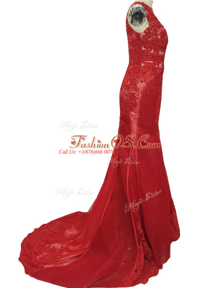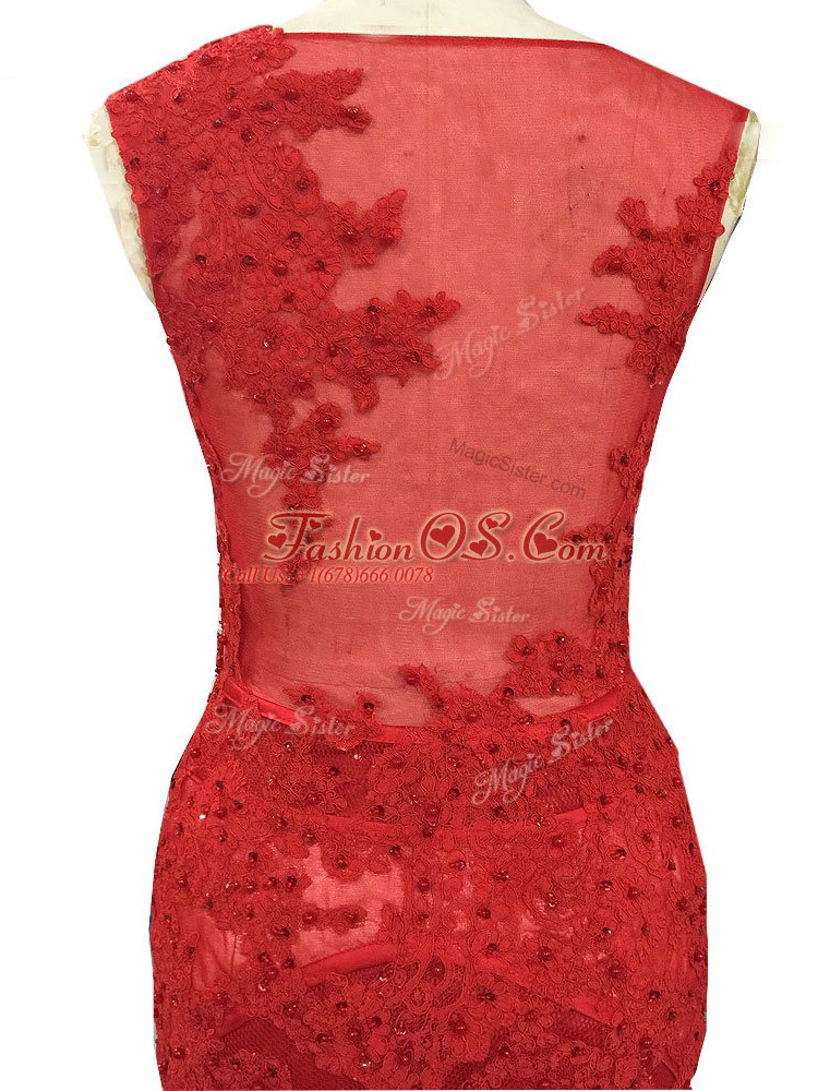 Unique Red Tulle Zipper Mother Of The Bride Dress Sleeveless Brush Train Lace