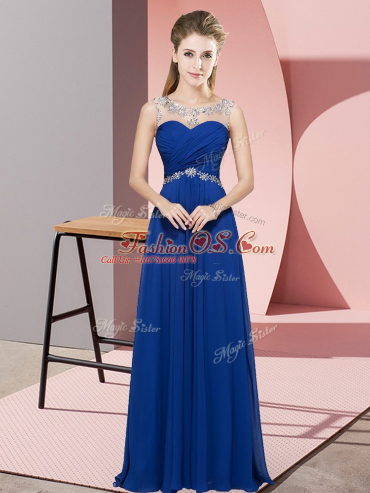 Unique Royal Blue Scoop Backless Beading Evening Dress Sleeveless