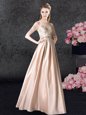 Unique Scoop Half Sleeves Taffeta Formal Dresses Appliques Zipper